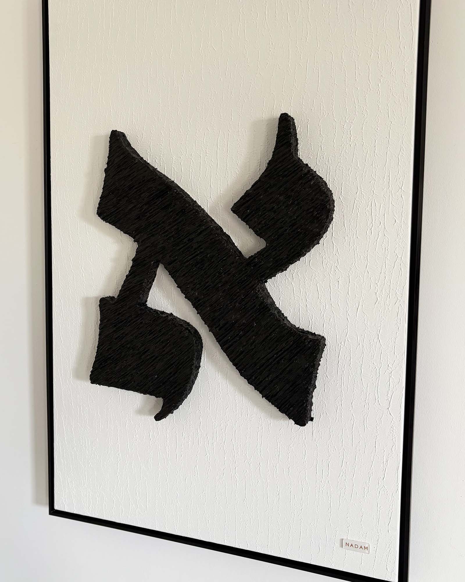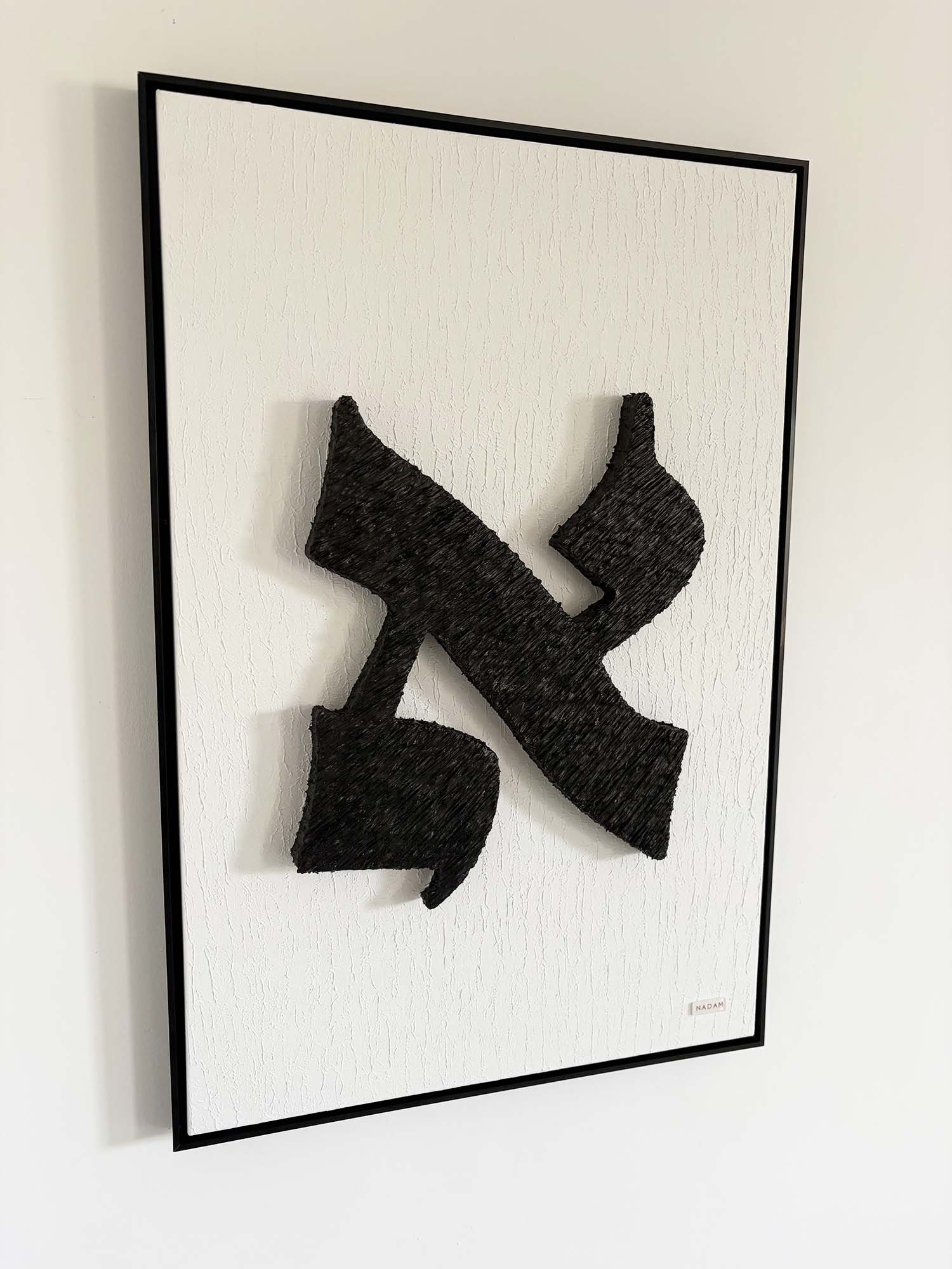 This artwork features a black Aleph.